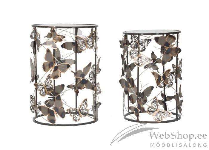 Stiilne metallist abilaudade komplekt. Komplekti kuulub 2 lauda. Plaadid on turvaklaasist.