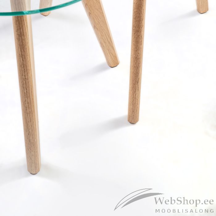 Komplekti kuulub 2 lauda. Lauaplaat: 8mm läbipaistev klaas. Tammepuidust jalad.