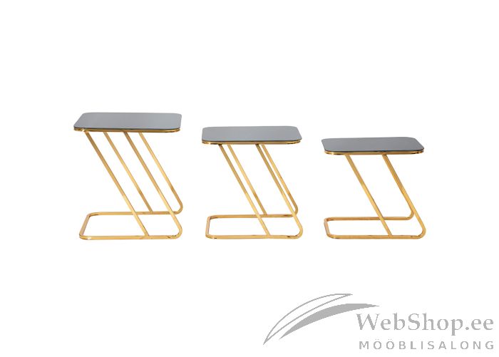 Elegantne abilaudade komplekt. Lauade karkass on kuldset värvi metallist. Tasapind on musta värvi klaasist.