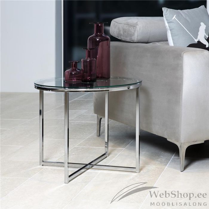 Täiendage oma elutuba elegantse ümara abilauaga. See lisab igasse kodusse modernset hõngu. Laual on läbipaistev klaas ja hõbedane raam. Kergesti hooldatavad materjalid, vastupidav karastatud klaas. Mõõdud on D55xH45cm. HOOLDUS: Hoidke klaasipind puhas, et vältida kriimustusi. Pihustage klaasipuhastusvahendit ja pühkige seda mikrokiudlapi või paberrätikuga. Pinnakahjustuste vältimiseks kasutage lauamatte ja klaasialuseid. Rooste vältimiseks pühkige pind lapiga kuivaks. Ärge hõõruge pinda kõvade esemetega.
