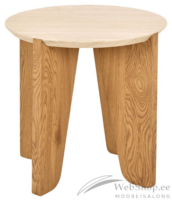 Abilaud on ilmekas ese igas kaasaegses elutoas. Abilaua disainis on vorm ja funktsionaalsus tasakaalus. Laud on orgaanilise vormiga, ümarate servadega ning travertiini välimusega. Koos metsiku tamme välimusega muutub minimalistlik disain põnevamaks. Mõõdud D50xH50cm.
