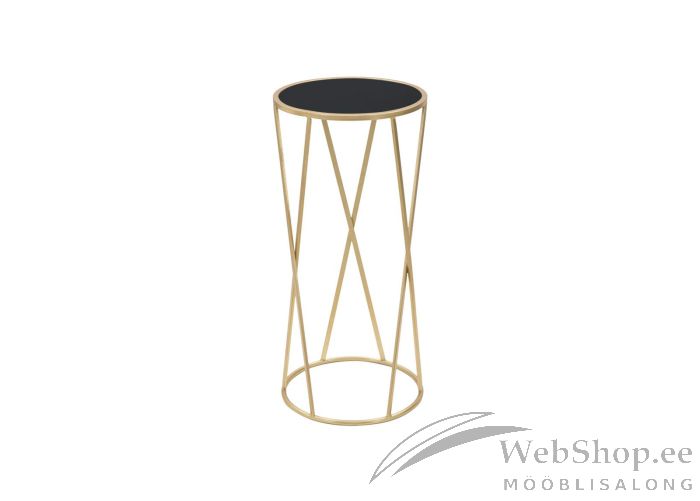 Stiilne kulla tooni metallist abilaud. Lauaplaat on kaetud musta värvi turvaklaasiga.