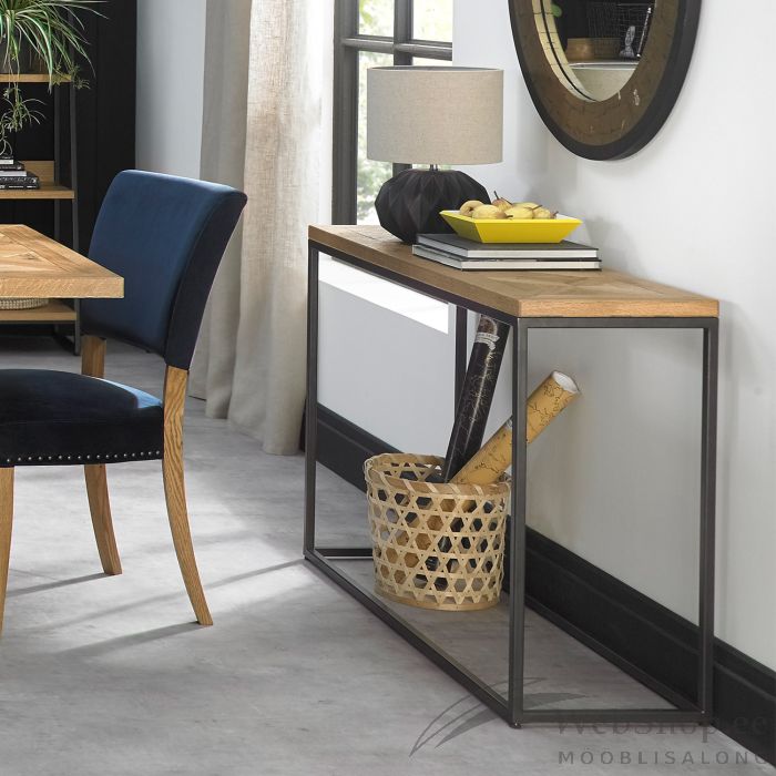 Efektne, naturaalse mosaiik tammespooniga lauaplaat on kauni harjatud töötlusega ning õlitatud. Pulbervärvitud metallist alusraam.