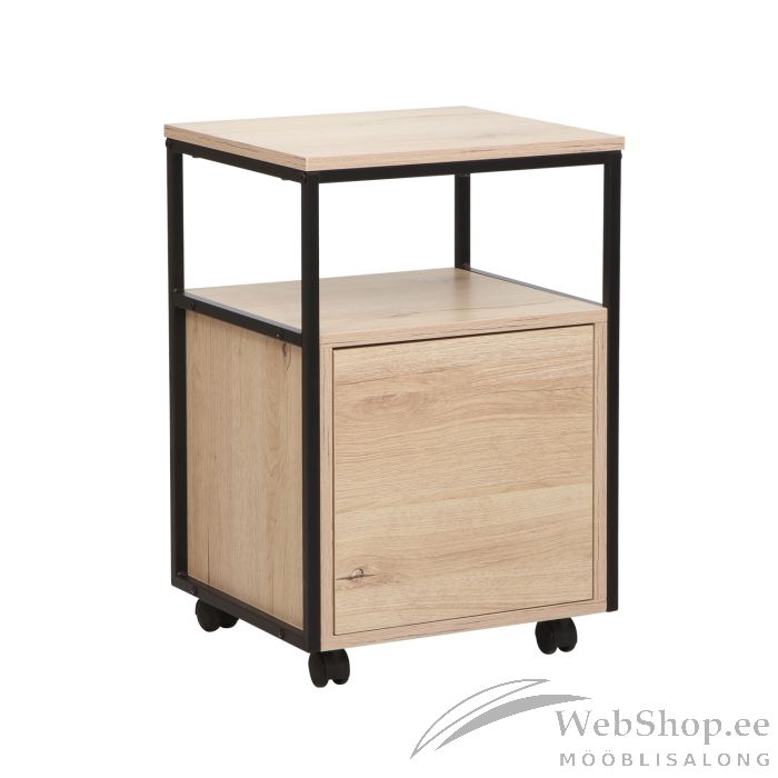 Abilaud / öökapp LESTER ratastega 40x36xH60cm. Materjal: melamiinplaat. Värvus: hele puit. Raam on valmistatud metallist ja viimistletud musta pulbervärviga.