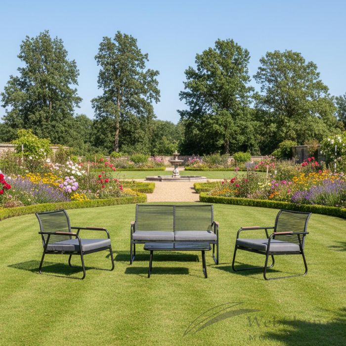 Aiamööblikomplekt MACOS laud, diivan ja 2 tooli, hall/must