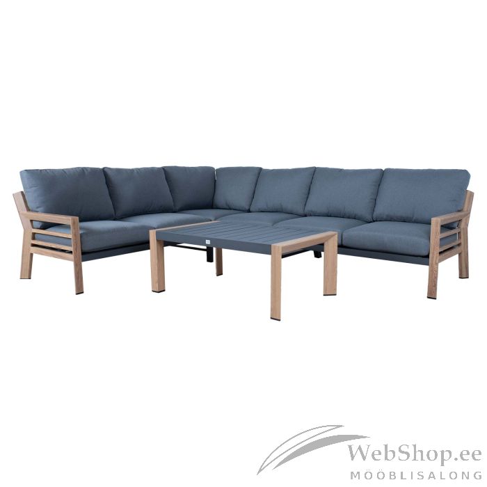 Aiamööbli komplekt TOMSON laud ja nurgadiivan, tiik/hall.