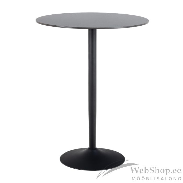 Stiilne baarilaud sobib ideaalselt kaasaegsesse interjööri. Ümmargune kuju aitab luua rohkem ruumi. Lauaplaat on kuuma- ja kriimustuskindlast keraamikast. Minimalistlik metallist trompetialus hoiab disaini visuaalselt kergena. Disainitud elegantses mustas värvitoonis. Mõõdud D80xH105cm.