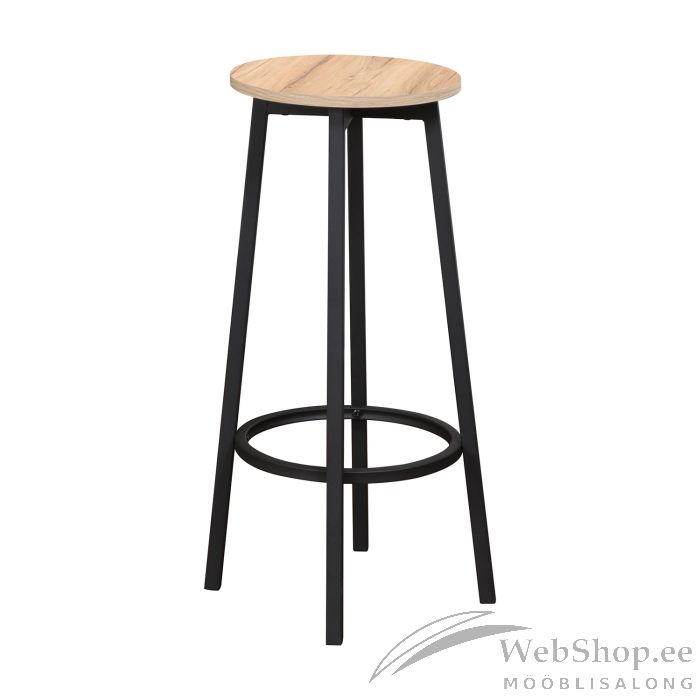 Baaripukk HANNES 38x38xH70cm, rustik melamiin. Iste: rustikaalse dekooriga melamiinplaat. Raam on valmistatud metallist ja viimistletud musta pulbervärviga.