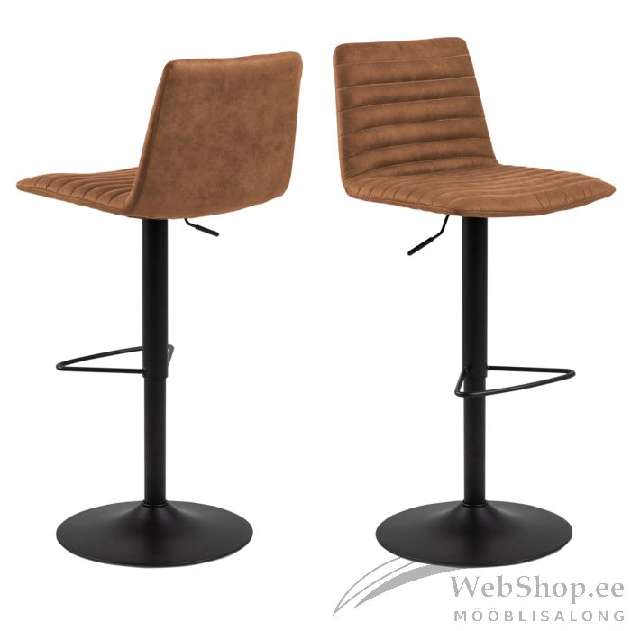 Baaripukk KIMMY, 50x46xH110.5cm, iste ja seljatugi: Preston fabric camel 24, jalg: must metall. Istumiskõrgus reguleeritav gaasamordi abil: 60.5-82cm.