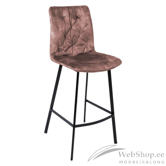 Baaritool AFTON tumeroosa samet. Tooli iste on kergelt polsterdatud ja kaetud sametkangaga. Kattematerjal: 100% polüester, 320g/m². Martindale 25 000. Tooli jalad ja alusraam on valmistatud metallist ja viimistletud musta pulbervärviga. Tooli üldmõõdud on 44x53xH112cm. Istme laius 44cm, istme sügavus 40cm, istme kõrgus 76cm. Kaalupiirang 120kg.