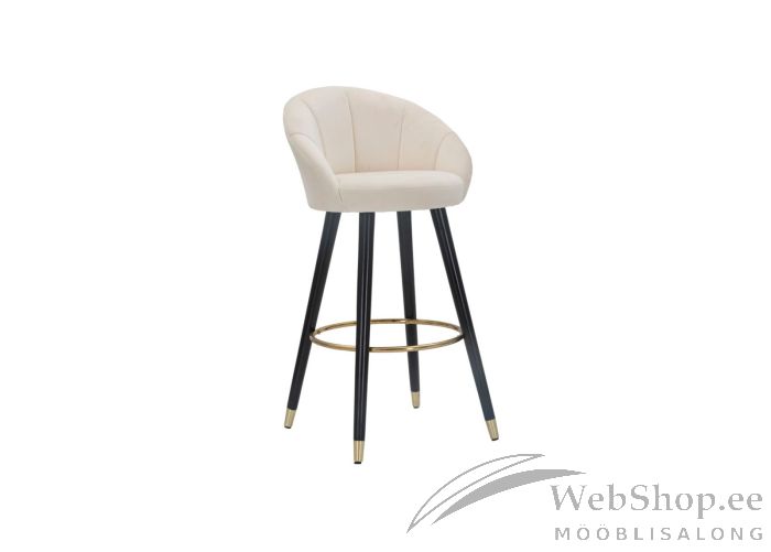 Stiilne kreemikat värvi tekstiilist kattega baaritool. Tooli jalad on musta värvi puidust. Istme pehmenduseks poroloon. Kuldset tooni metallist detailid.