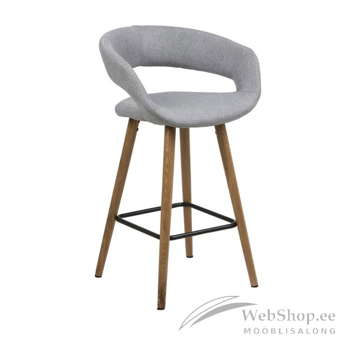 Baaritool madal GRACE 55x46,5xH98cm. Mitmekülgne baaripukk on dünaamiline istumislahendus kaasaegsesse interjööri. Sellel on polsterdatud iste ja vastupidav tammepuidust alus. Avatud seljatugi ja detailid täiendavad tooli välimust. Iste ja seljatugi: kangas, värvus: helehall. Jalad: tamm, viimistlus: õlitatud. Istme kõrgus maast 65,5cm. Kaalupiirang: 110kg. HOOLDUS: Hooldus piirdub tolmuimejaga ja plekieemaldamisega. Plekkide eemaldamisel tuleb olla ettevaatlik. Katsetage plekieemaldajaid esmalt vähem nähtaval alal ja tegutsege vastavalt tulemusele. Ärge kunagi kasutage lahusteid. Ärge asetage mööblit otsese päikesevalguse kätte. Üldiselt vajavad lakitud pinnad vähe hooldust. Kõik plekid tuleb koheselt eemaldada seebiveest kuivaks väänatud lapiga ja pühkida pind kuivaks.