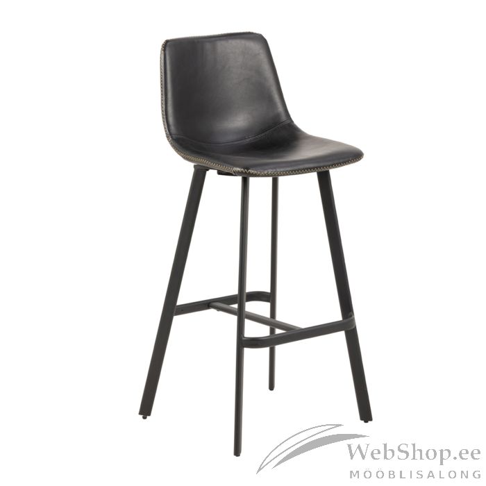 Baaritool on valmistatud mugavuse ja disaini osas järeleandmisi tegemata. Toetav L-kujuline iste pakub mugavust. Musta kunstnahaga ja vintage-efektiga baaritool on tugeva iseloomuga. Mattmustal alusel on jalatugi. Moodne baaritool sobib igasse koju. Alus on valmistatud mattmustast pulbervärvitud terasest. Istme kõrgus on 76,5cm. Kaalupiirang on 110kg. Mõõdud on 46,5x50xH103cm.