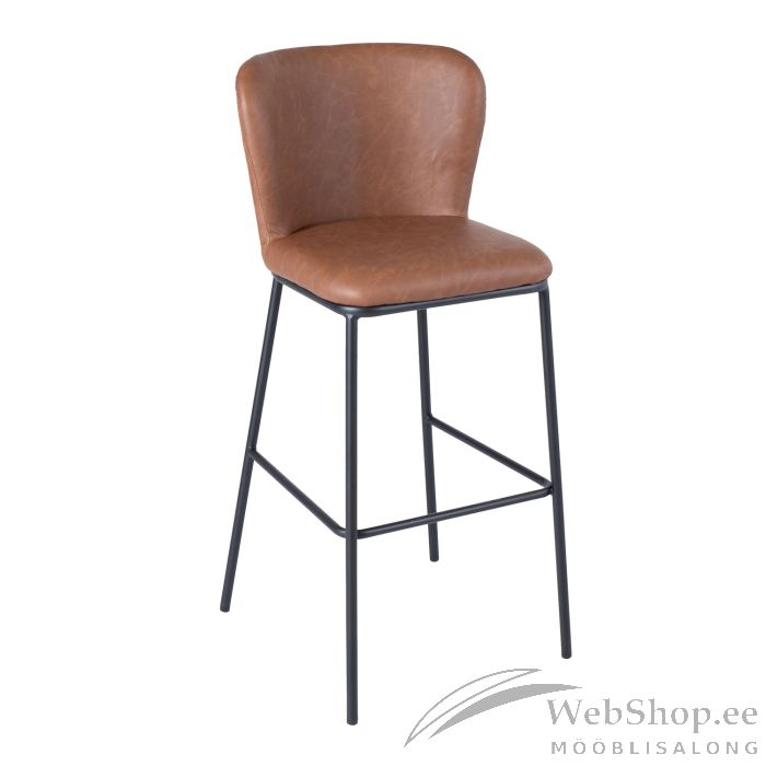 Baaritool SAVOY 47x51xH105cm, helepruun. Tooli iste ja seljatugi on polsterdatud ja kaetud pruuni kunstnahka meenutava kangaga. Tooli jalad ja raam on valmistatud metallist ja viimistletud musta pulbervärviga. Kaalupiirang 100kg.