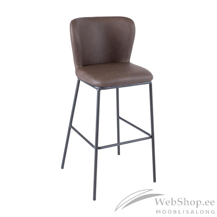 Baaritool SAVOY 47x51xH105cm, pruun. Tooli iste ja seljatugi on polsterdatud ja kaetud pruuni kunstnahka meenutava kangaga. Tooli jalad ja raam on valmistatud metallist ja viimistletud musta pulbervärviga. Kaalupiirang 100kg.