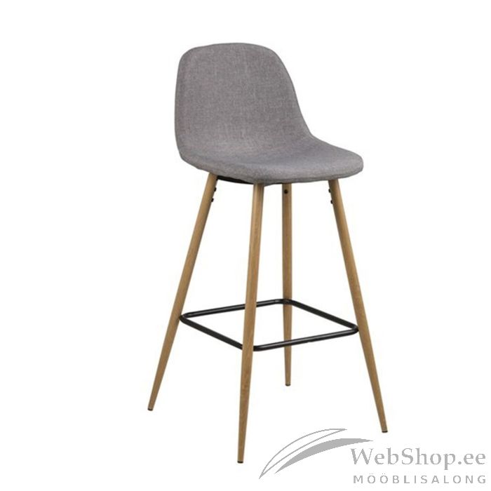 Baaritool WILMA 46,6x51xH101cm. Baaritool sobib suurepäraselt kiireks suupisteks või kohvi nautimiseks, lisades samas kööginurka kaasaegse stiilielemendi. Polsterdus ja jalatugi muudavad tooli sobivaks ka pikaks õhtusöögiks. Iste ja seljatugi: kangas, värvus: helehall, jalad: metall, värvus: tamm. Istme kõrgus maast 73cm. Kaalupiirang: 110kg.
