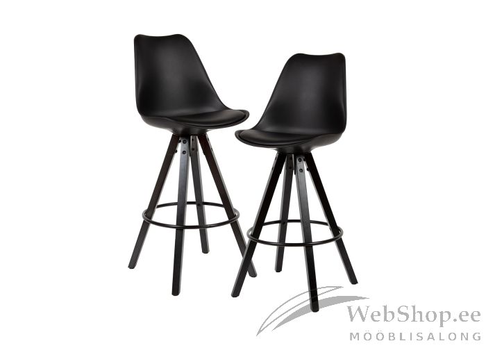 Skandinaavia disainiga baaritoolide komplekt. Komplekti kuulub 2 tooli. Musta värvi plastikust ja kunstnahast iste. Jalad on musta värvi puidust. Maksimaalne kandevõime 110kg.
