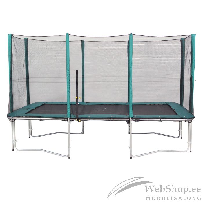 Batuut turvavõrguga must. Batuut pakub hea ajaveetmise võimaluse värskes õhus. See on paeluv nii pere vanematele kui ka noorematele liikmetele. Batuudi kasutamise muudab turvalisemaks turvavõrgu olemasolu. Võrk on valmistatud musta värvi polüestervõrgust 90g/m², millel on tõmblukuga uks. Turvavõrgu kõrgus on 272cm. Galvaniseeritud raami torude mõõdud on D38,1x1,1mm. Batuudi kõrgus maast on 92cm. Hüppematt on valmistatud musta värvi polüpropeenist. Batuudil on roheline PVC-ga kaetud turvaäär, mis on polüetüleenvahust pehmendusega. Äär on 36cm lai. Tootel on nelja jalaga galvaniseeritud raam. Ülemise ääre toru mõõdud on D60x2,5mm ja jalgade mõõdud on D42x2mm. Batuudil on 92 vedru 210mm, D25x3,2mm. Batuudi mõõdud on 423x274cm ja kaalupiirang on 150kg. HOIATUS: toode ei ole mõeldud kasutamiseks tugeva tuule ja vihma korral. Müüja ei vastuta ekstreemsetest ilmastikutingimustest tulenevate kahjude eest.