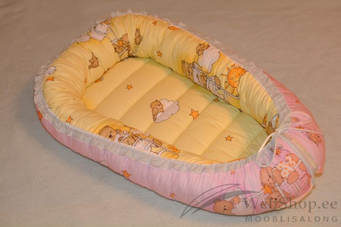 Pehme ja turvaline beebipesa on värskele ilmakodanikule parim kingitus, kus ta saab ennast mõnusalt mugavalt tunda ning pole kartust, et vanemad talle kogemata peale keeravad.Kattematerjal 100% puuvill, mis omab Oeko-Tex Standard 100 sertifikaati. Täitematerjal fiiberkiud / vatiin.