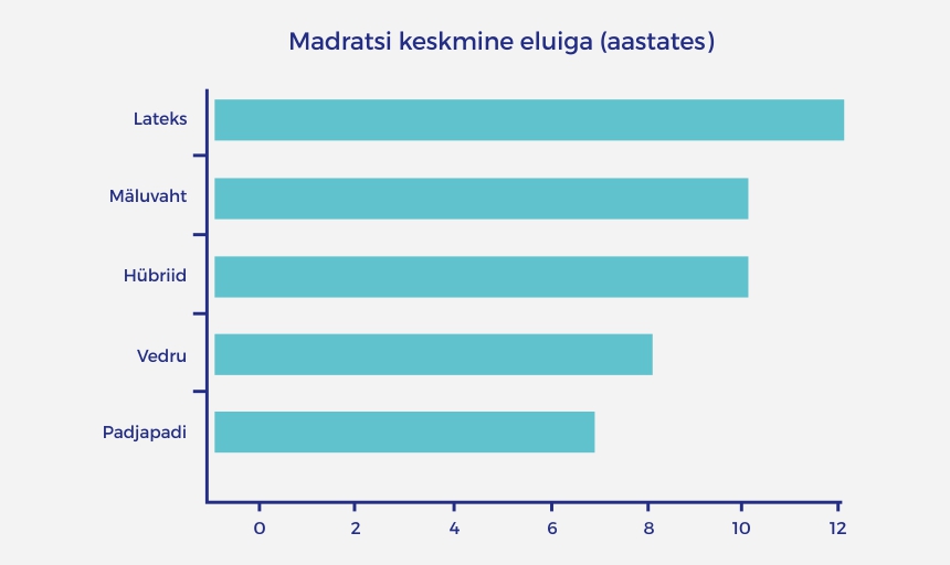 Erinevate madratsimaterjalide tüüpiliste „aegumiskuupäevade“ kiireks teada saamiseks vaata allolevat graafikat:
