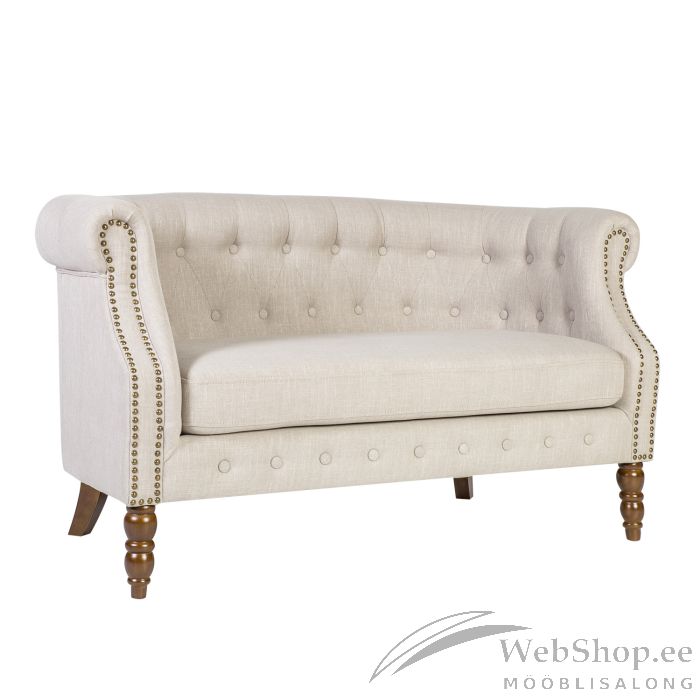 Diivan HOLMES 2-kohaline, beeþ kangas. 2-kohaline diivan on kaetud beeþi kangaga. Kattematerjal on 57,7% polüester, 25,7% viskoos, 16,6% linane. Polsterdus: polüuretaanvaht. Diivanil on puidust jalad. Toote mõõdud on 140x75xH78cm.