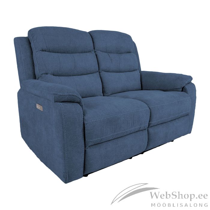 Diivan MIMI 2-kohaline elektriline recliner 153x93xH102cm, sinine. Recliner tüüpi diivani mõlema istme selja- ja jalatoe asendit on võimalik muuta elektrilise mehhanismi abil. Jalatuge üles tõstes liigub seljatugi sujuvalt kaasa lamavasse asendisse. Kattematerjal: 100% polüesterkangas, Martindale 30 000. Karkass: puit, vineer ja metall. Polsterdus: polüuretaanvaht.