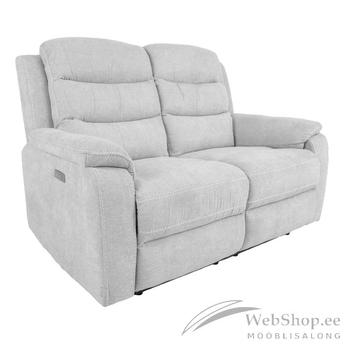 Diivan MIMI 2-kohaline elektriline recliner 153x93xH102cm, hõbehall. Recliner tüüpi diivani mõlema istme selja- ja jalatoe asendit on võimalik muuta elektrilise mehhanismi abil. Jalatuge üles tõstes liigub seljatugi sujuvalt kaasa lamavasse asendisse. Kattematerjal: 100% polüesterkangas, Martindale 30 000. Karkass: puit, vineer ja metall. Polsterdus: polüuretaanvaht.