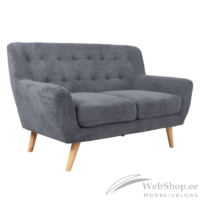 Diivan RIHANNA 2-kohaline hall. Diivani kattematerjal on halli värvi 100% polüesterkangas. Diivanil on puidust raam, pocket vedrustus. Polsterdus: polüuretaanvaht, iste 25kg/m³, 18kg/m³, seljatugi 18kg/m³, käetoed 16kg/m³. Diivani jalad on heledat tooni puidust. 2-kohalise diivani mõõdud on 140x84xH87cm.