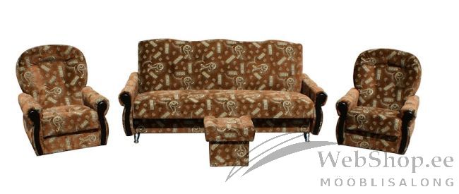 Komplekti kuulub: diivan, 2 tugitooli ja tumba. Diivanil on bonell vedrustus ja puit karkass. Kangavaliku kohta palume küsida infot meil: info@webshop.ee.