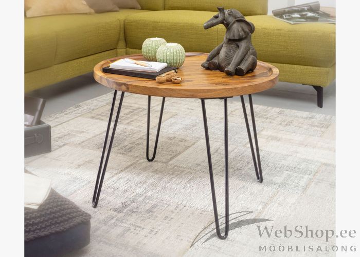 Kaasaegses tööstuslikus stiilis diivanilaud. Lauaplaat on valmistatud India Roosipuust, mis on kaetud läbipaistva lakiga. Jalad on musta värvi metallist. Laud on valmistatud käsitööna. Iga toode on originaalne ja võib erineda pildil olevast, sest on naturaalsest puidust.