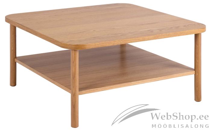 Lakitud viimistlusega kahekorruseline diivanilaud toob elutuppa soojust ja hubasust. Ruudukujuline ülaosa on ideaalne väiksemate sisekujunduselementide eksponeerimiseks. Tänu allolevale riiulile on kõik ajakirjad käeulatuses. Mõõdud on 90x90xH42cm. HOOLDUS: Üldiselt vajavad lakitud pinnad vähe hooldust. Kõik plekid tuleb koheselt eemaldada seebiveest kuivaks väänatud lapiga.