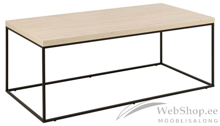 Diivanilaual on travertiini välimus. Lauaplaat toetub ristkülikukujulisele terasalusele. Kahe materjali kontrast annab lauale julge välimuse. Ekspressiivne diivanilaud paistab silma igas ruumis. Materjal: MDF. Jalad: pulbervärvitud metall. Toote mõõdud on 110x55xH45cm.