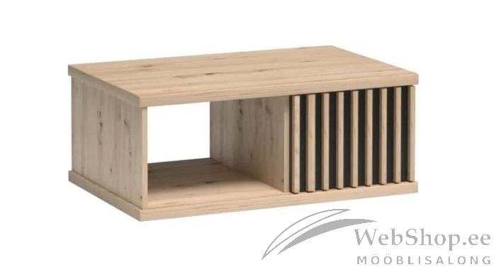 Moodne diivanilaud on valmistatud kvaliteetsest lamineeritud mööbliplaadist, millele lisavad efekti mustal taustal MDF plaadist valimistatud liistud
