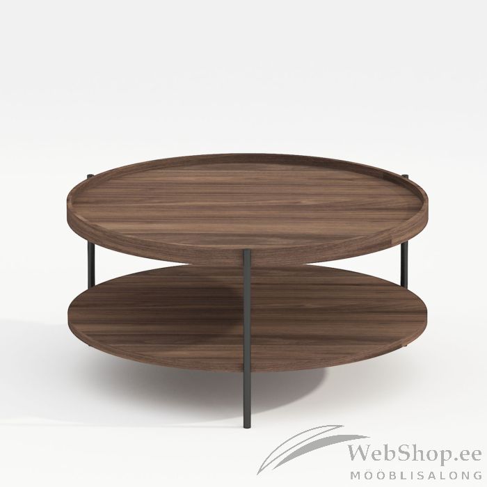 Diivanilaud CINDY D80xH40cm, melamiin pähkel. Lauaplaat ja alumine riiul on valmistatud heleda pähklidekooriga melamiinplaadist. Laua jalad ja raam on valmistatud metallist ja viimistletud musta pulbervärviga.