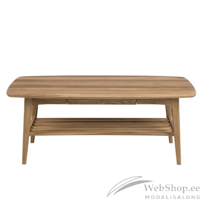 Diivanilaud on skandinaavialiku retro ilmega. Nurga all olevad jalad ja ümarad servad annavad lauale iseloomuliku ilme. Tamme välimus muudab laua soojaks ja hubaseks. Ajakirju ja muid vajalikke esemeid saab hoida sahtlis või laua all riiulis. Lauaplaat: tammespoon, alus: tamm, viimistlus: õlitatud. Mõõdud on 130x70xH51cm.