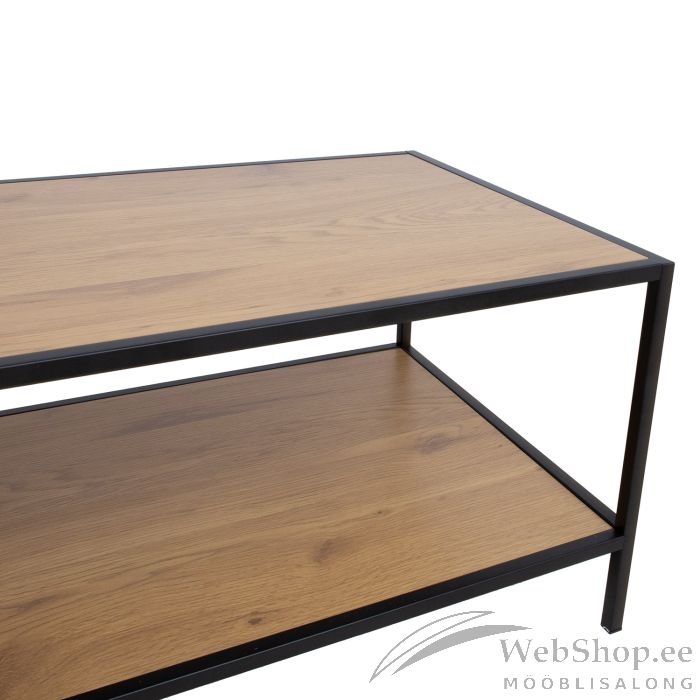 Diivanilaud HEDVIG 100x50xH40cm, saar/must. Lauaplaat ja alumine riiul: saare dekooriga melamiinplaat. Laua jalad ja raam on valmistatud metallist ja viimistletud musta pulbervärviga.