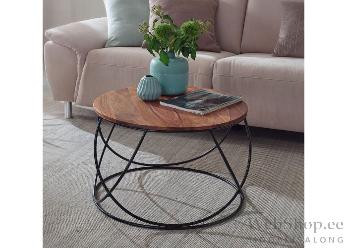Trendikas industriaalstiilis pilkupüüdev diivanilaud. Lauaplaat on valmistatud India roosipuust ning ekstravagantsust lisab metallist musta värvi raam. Laud on valminud käsitööna. Lauaplaati katab naturaalne lakk. Laua maksimaalne kandevõime on 20kg.