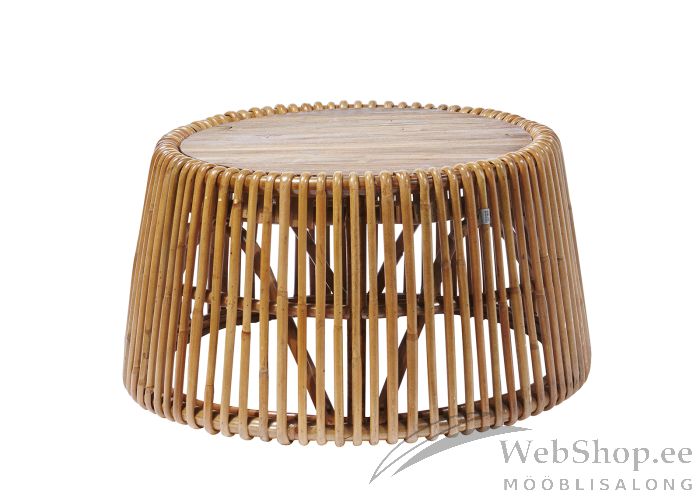 Rotangist diivanilaud. Lauaplaat on naturaalsest tiikpuust.