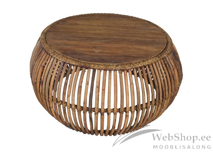 Naturaalsest rotangist raamiga diivanilaud. Lauaplaat on tiikpuust. Viimistlus: naturaalne. Laud on toodetud Indoneesias.