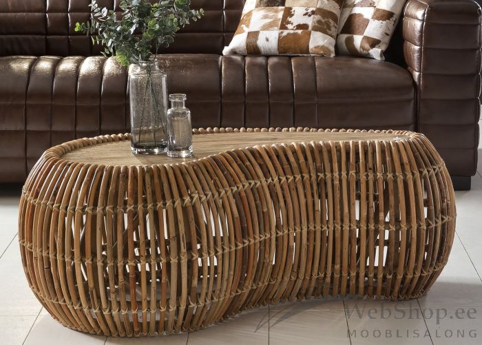 Tiikpuust lauaplaadi ja rotangist jalgadega viimistlemata diivanilaud. Tarnitakse monteeritult.