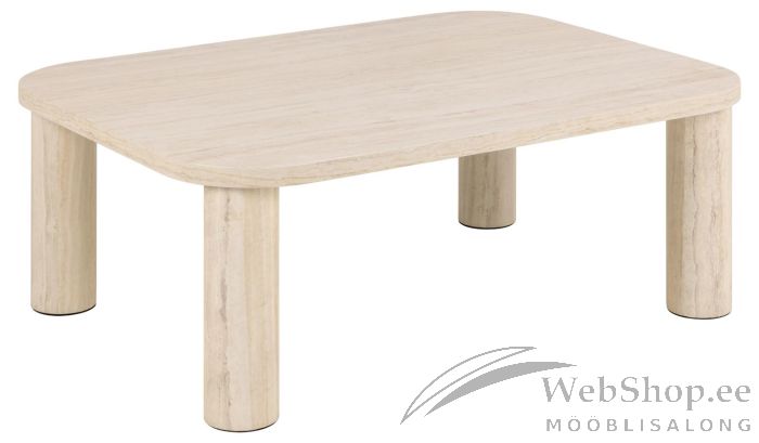 Diivanilaud mõjub visuaalselt atraktiivsena ja torkab silma. Laud sobib hästi elutoa keskpunktiks. Laua ilmekat välimust rõhutavad travertiini välimus ja jõulised ümarad jalad. Laud lisab igasse eluruumi rafineeritust. Mõõdud 100x75xH36cm.