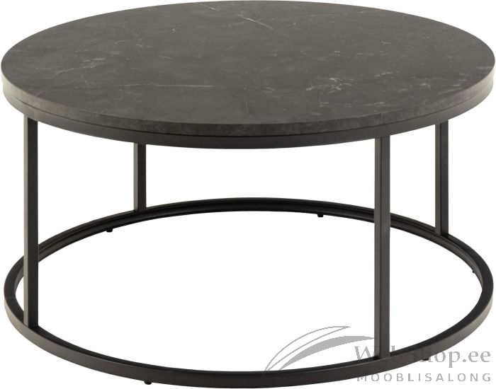 Omanäolise ümara lauaplaadi ja ümara alusega diivanilaud. Musta marmori välimus annab lauale kaasaegse ilme. Lauaplaat on valmistatud melamiinist. Koos musta pulbervärviga kaetud metallalusega sobib laud enamikesse kodudesse. Mõõdud D80xH40cm.