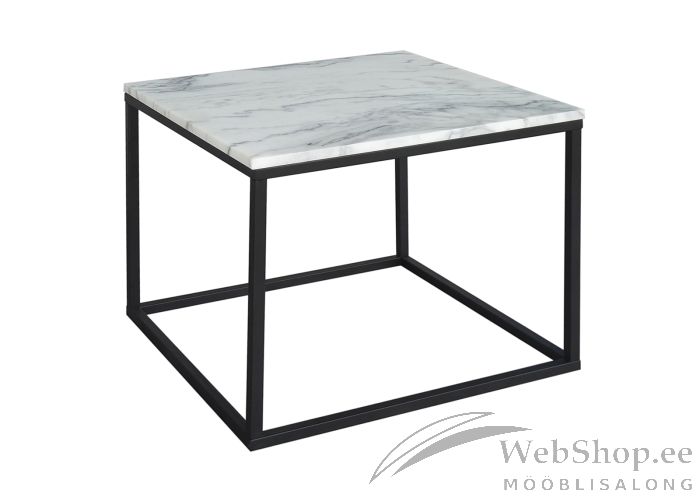 Valgest marmorist diivanilaud. Musta värvi metallist jalad.