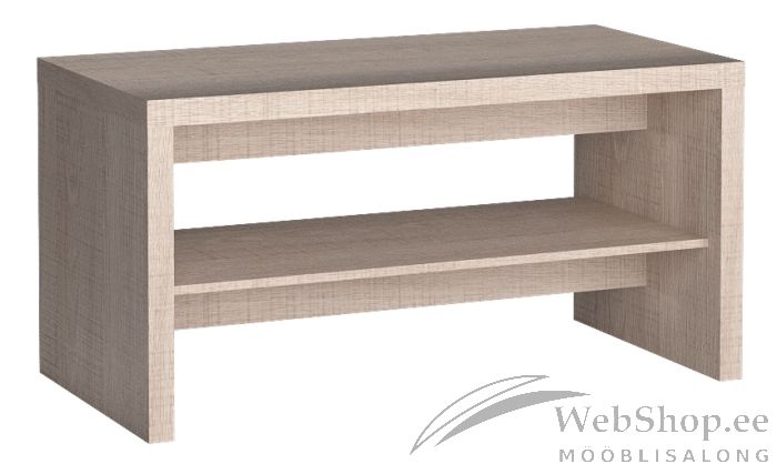Vastupidavast melamiinkattega laminaadist valmistatud avatud riiuliga tugev diivanilaud.