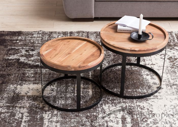Naturaalsest viimistlemata akaatsiapuidust lauaplaatidega diivanilaudade komplekt. Komplekti kuulub 2 erineva suurusega lauda. Laudade jalad on musta värvi metallist. Iga toode on originaalne ja võib erineda pildil olevast, sest on naturaalsest puidust.