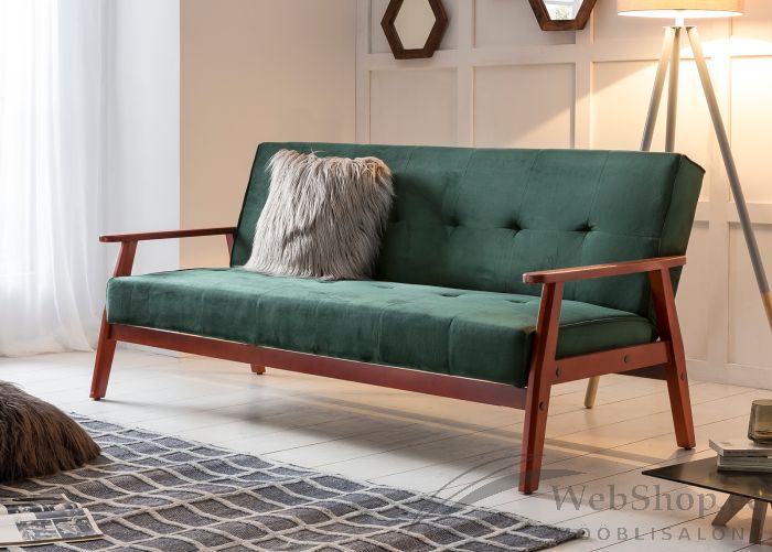 Rohelist värvi velvetist diivanvoodi. Voodi raam on eukalüpti puidust, kirsi tooni. Pehmenduseks poroloon. Diivani magamisaseme mõõdud on 175x108cm.