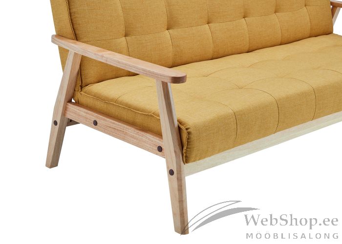 Eukalüpti puust raami ja käetugetega diivanvoodi. Raami viimistlus: naturaalne. Kaetud sinepikollase riidega. Diivani seljatoe kaldenurk on muudetav (kas 60 või 90 kraadi), võimalik kasutana voodina. Pehmenduseks vahtpolster. Magamisaseme mõõdud: 108x175cm.