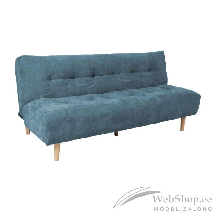 Diivanvoodi KIRUNA helesinine. Praktiline ja funktsionaalne click-clack mehhanismiga diivanvoodi sobib hästi väiksemasse korterisse, suvilasse või külalistetuppa. Diivani kattematerjal: 100% polüesterkangas. Karkass: puit, vineer. Polsterdus: polüuretaanvaht. Diivani üldmõõdud on 186x101xH87cm. Diivanvoodi mõõdud avatuna on 186x120xH40cm. Diivanil on heledad puidust jalad.