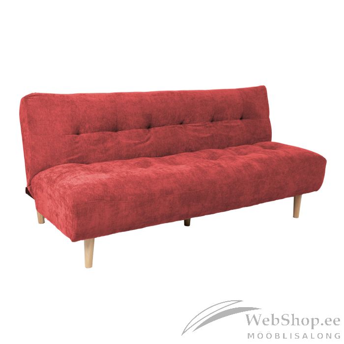 Diivanvoodi KIRUNA punane. Praktiline ja funktsionaalne click-clack mehhanismiga diivanvoodi sobib hästi väiksemasse korterisse, suvilasse või külalistetuppa. Diivani kattematerjal: 100% polüesterkangas. Karkass: puit, vineer. Polsterdus: polüuretaanvaht. Diivani üldmõõdud on 186x101xH87cm. Diivanvoodi mõõdud avatuna on 186x120xH40cm. Diivanil on heledad puidust jalad.