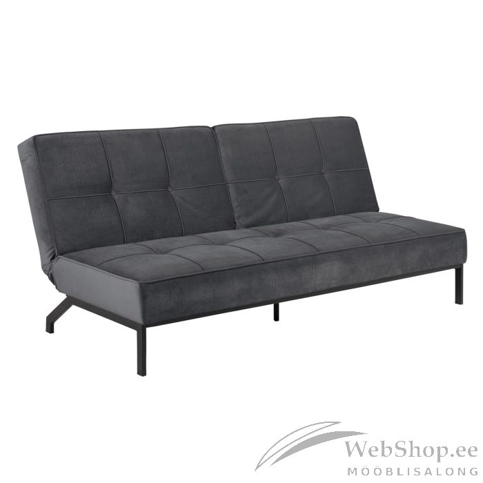 Diivanvoodi PERUGIA tumehall. Diivan on kaetud sametkangaga, värvus: VIC fabric dark grey 28. Jalad on musta värvi metallist. Diivani mõõdud avatuna on 120x198cm. Toote üldmõõdud on 198x95xH87cm.